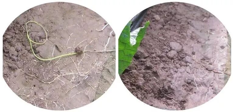 金草帽農(nóng)技專家宋書軍指著地面密實的根系說:“你看這么多活性根都長出地面,根系健碩繁多,這樣的黃瓜肯定長得好。再看這片示范田的黃瓜葉片肥厚且呈墨綠色,摸著柔軟,花色鮮艷,聞著清香感十足。而傳統(tǒng)施肥的黃瓜由于土壤問題及根系弱,葉片發(fā)黃,摸著發(fā)焦發(fā)硬。”摘一個黃瓜咬一口,又香又脆,“感覺吃到了小時候的味道!” 他笑稱道。